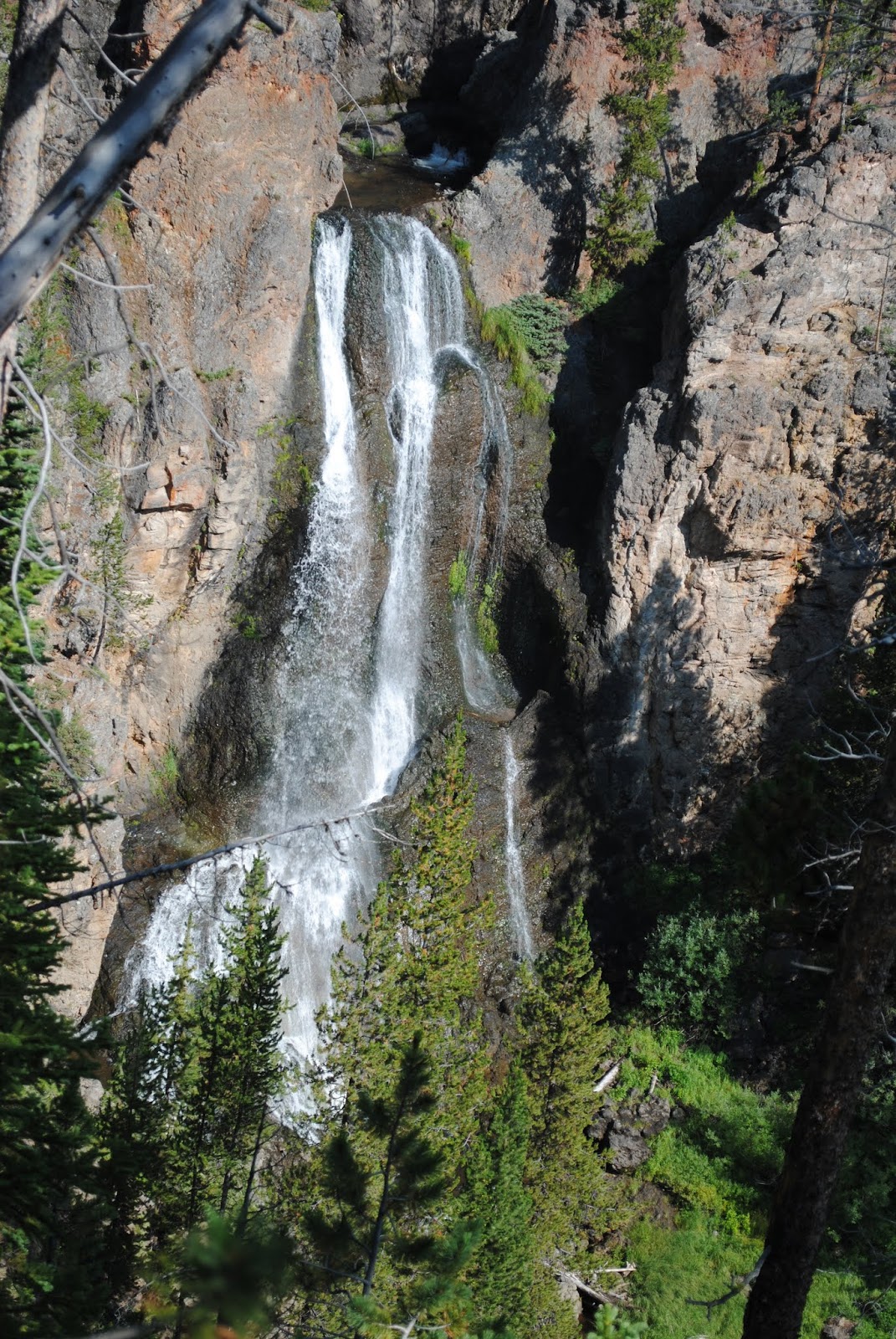 We left Lookout Point, completed the North Rim Trail and headed back to the Brink of the Upper Falls. From there, we took another trail that led to Crystal Falls. This trail was definitely not traveled much and there were signs stating this was Bear Country. I began my clapping and chanting of No Bears, No Bears so we would not run across any by surprise. It was a short walk and we came to Crystal Falls which drops 129 feet in three stages. We took the right fork first to see the view of the falls and then went back and took the left fork which crossed over the top of the falls. It always amazes me how there are places in Yellowstone that are wall to wall people, but then you can go off on another trail and there is absolutely no one!